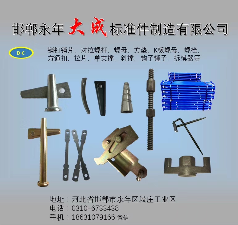 點擊數:48512019-07-08 15:54:18 來源: 鋁模板銷釘_鋁模板配件_建筑扣件螺栓_扣件螺絲生產廠家-永年區大成標準件制造有限公司